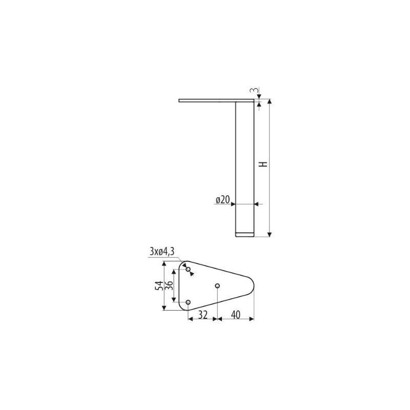 Nóżka meblowa, czarny super mat, GAMET NS56-150-L36