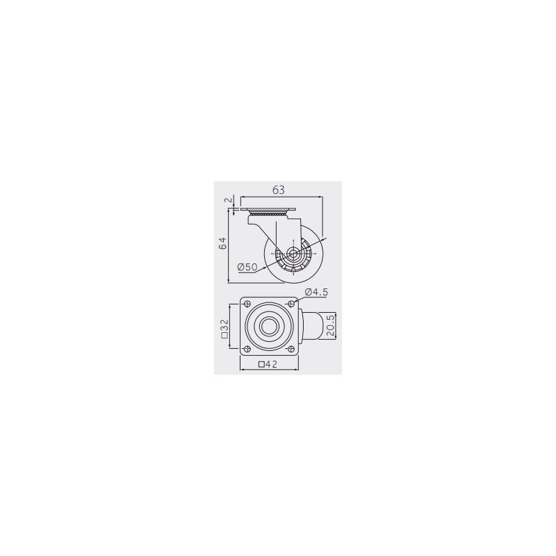 Kółko meblowe Brazylia przezroczyste 50mm (bez hamulca)