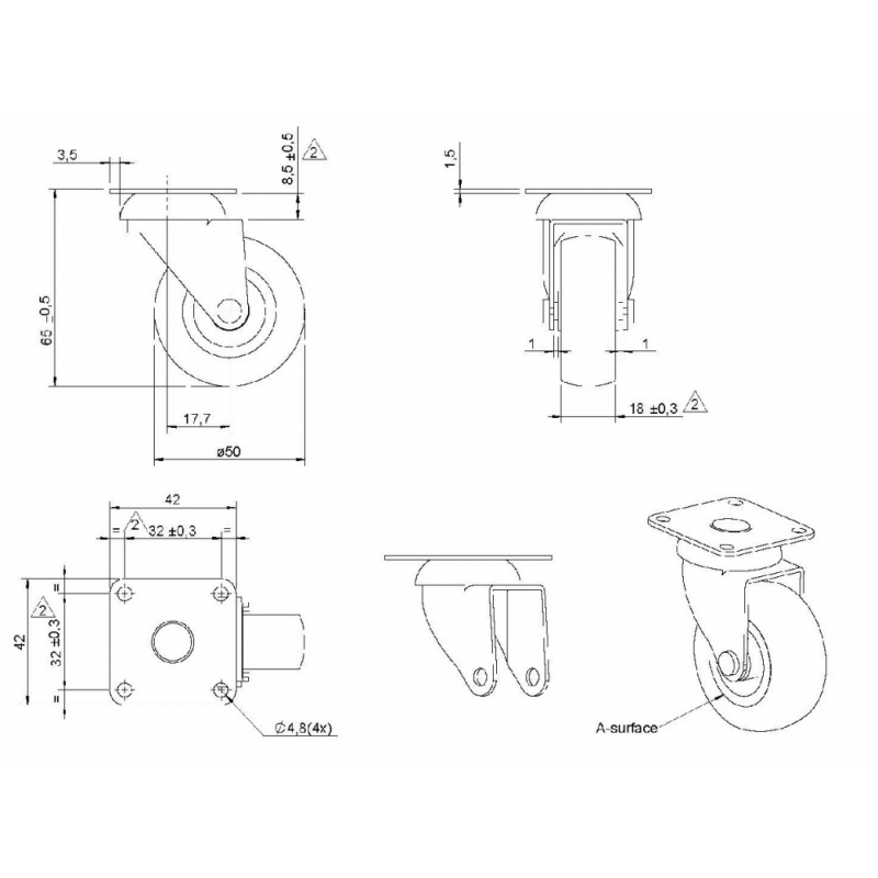 Kółko z płytką guma AMIX 50MM