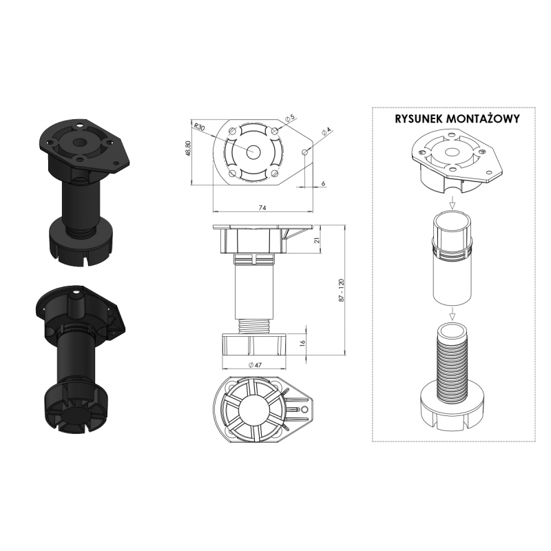 Nóżka plastikowa czarna S3/100 B stopka z wypustką