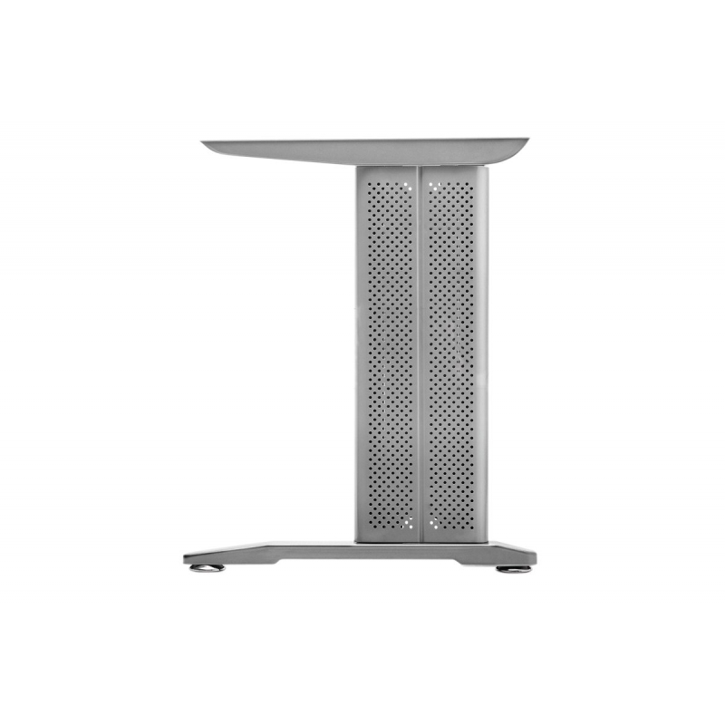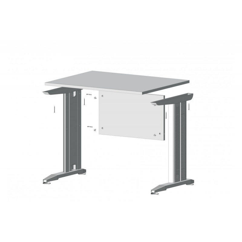Stelaż biurkowy przeznaczony jest do tworzenia elementów nośnych blatów. Ma wysokość 725 mm i głębokość 600 mm. Perforowany tunel kablowy łączy górną i dolną półkę. W tunelach znajdują się 4 równe otwory do mocowania łączeń. Dolna półka posiada regulowane stopki. Umożliwiają one regulację wysokości stelażu w zakresie 10 mm. Górna półka posiada 2 przeciwstawne otwory przelotowe 7 mm do montażu blatu roboczego. Regał wykonany jest ze stali i pokryty lakierem w kolorze srebrnym.
