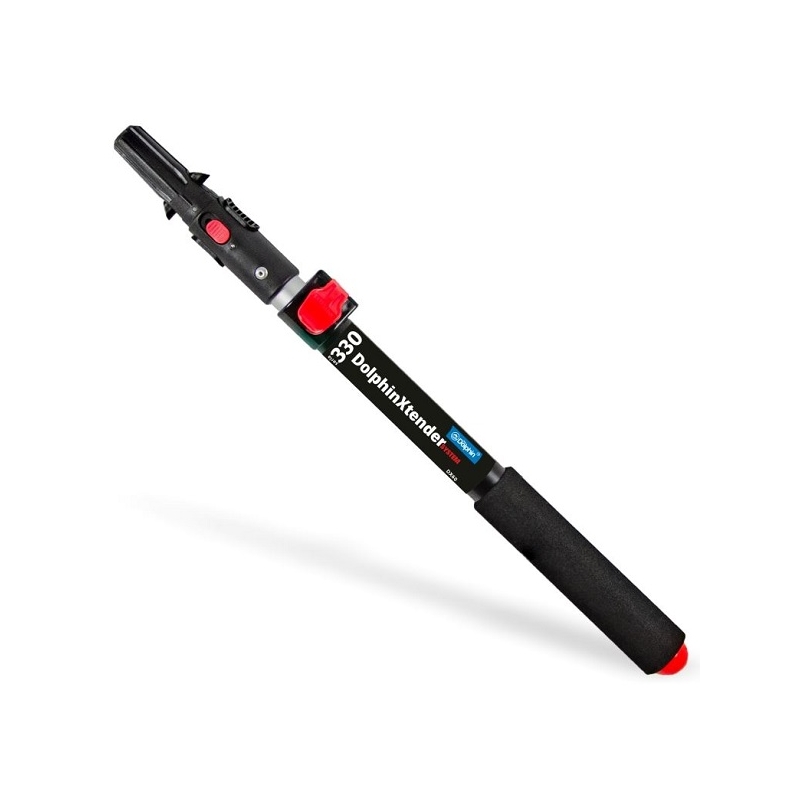 Kij DolphinXtender System ma regulowaną długość w zakresie między 30 cm – 60 cm. Jego zaletą jest jakość wykonania, a jakość przejawia się przede wszystkim w niewielkiej wadze tego narzędzia, ponieważ wykonany jest z aluminium. Kij teleskopowy posiada ergonomiczną piankową rączkę, która zapewnia komfort i wygodę oraz system płynnego regulowania długości. Możemy go odblokować i ustawić dowolną długość. Dodatkową i bardzo ważną zaletą kija DolphinXtender jest również system mocowania uchwytu. Po nałożeniu uchwytu na kij mamy dodatkową blokadę, która powoduje, że uchwyt trzyma się bardzo stabilnie.