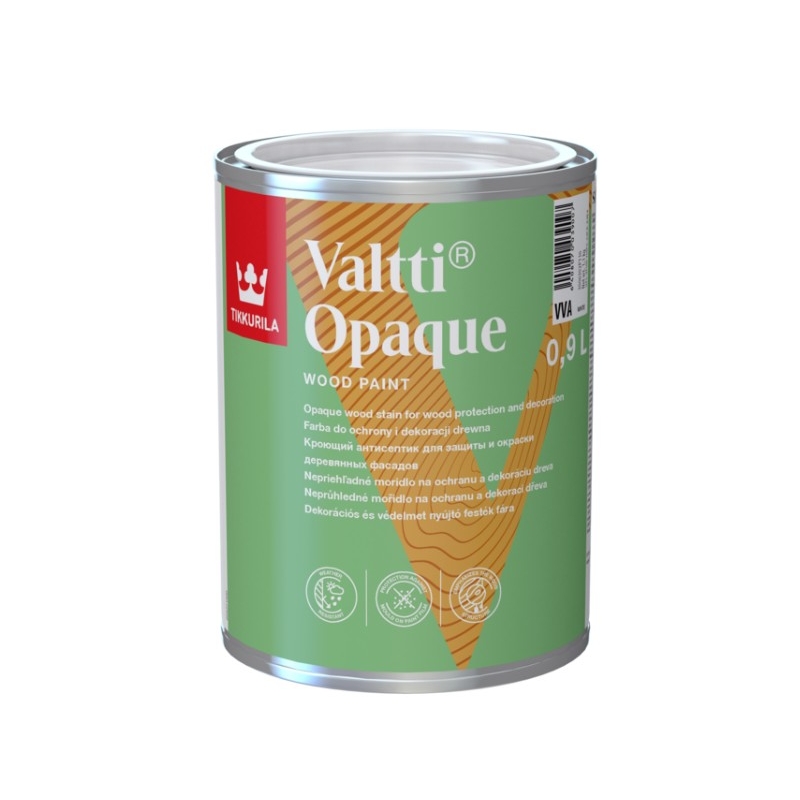 Półmatowa farba akrylowa wzmacniana związkami alkidowymi, charakteryzująca się niską emisją zapachu, przeznaczona do stosowania na zewnętrznych powierzchniach drewnianych. Odporna na działanie warunków atmosferycznych, elastyczna, wyjątkowo trwała i niewymagająca wielu zabiegów konserwacyjnych. Tikkurila Valtti Opaque jest farbą regulującą poziom wilgotności, dzięki czemu nie powstają na niej pęcherze, nie pęka i nie łuszczy się. Zabezpiecza drewno przed działaniem promieni UV.