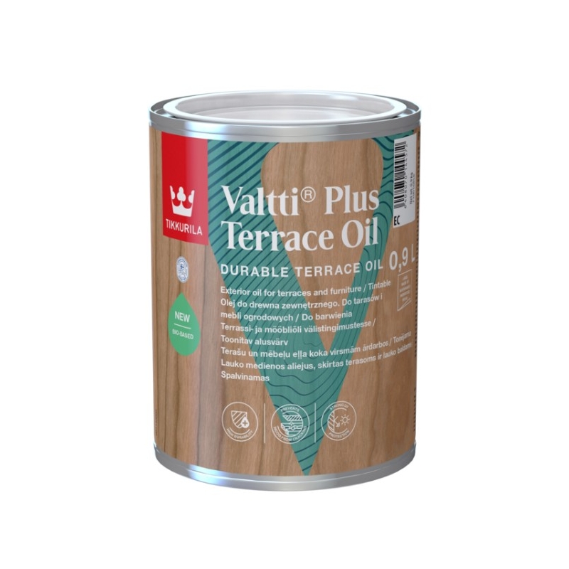 Tikkurila Valtti Plus Terrace Oil chroni drewnianą powierzchnię przed promieniowaniem UV, wilgocią i zabrudzeniami. Idealnie nadaje się do zabezpieczania zarówno mebli ogrodowych jak i tarasów.