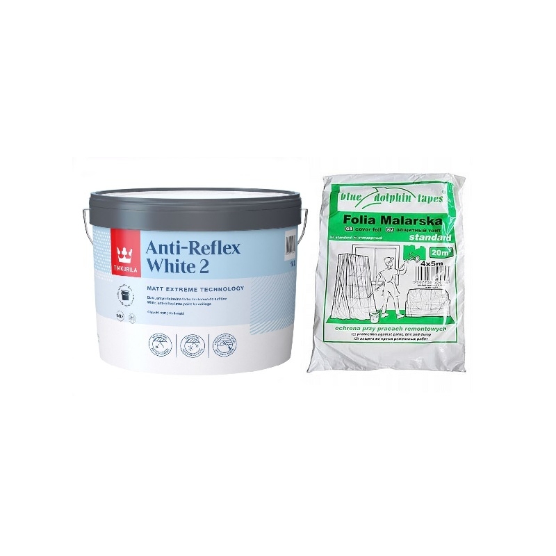 Anti-Reflex White 10L farba antyrefleksyjna z folią malarską Standard 4mx5m, Tikkurila