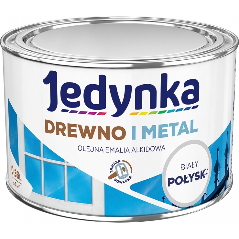 Farba do drewna i metalu Biały Połysk 0,36L; Jedynka 00457327