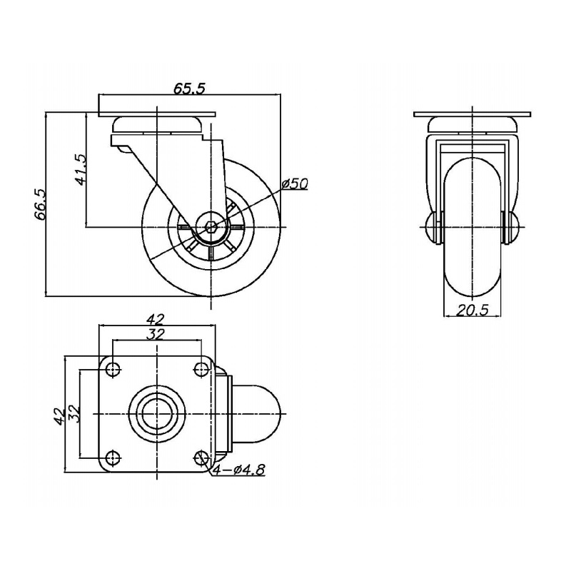 Kółko meblowe A przezroczyste 50mm z płytką AMIX