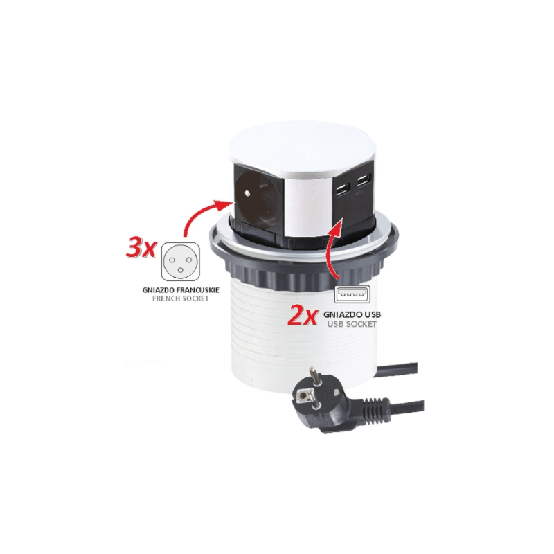 TETRABOX 3x gniazdo, 2x USB
