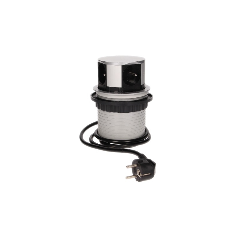 wyc.Przedłużacz biurkowy/ gniazdo meblowe Ø10cm wysuwane z blatu z przewodem 1,5m, 4x2P+Z
