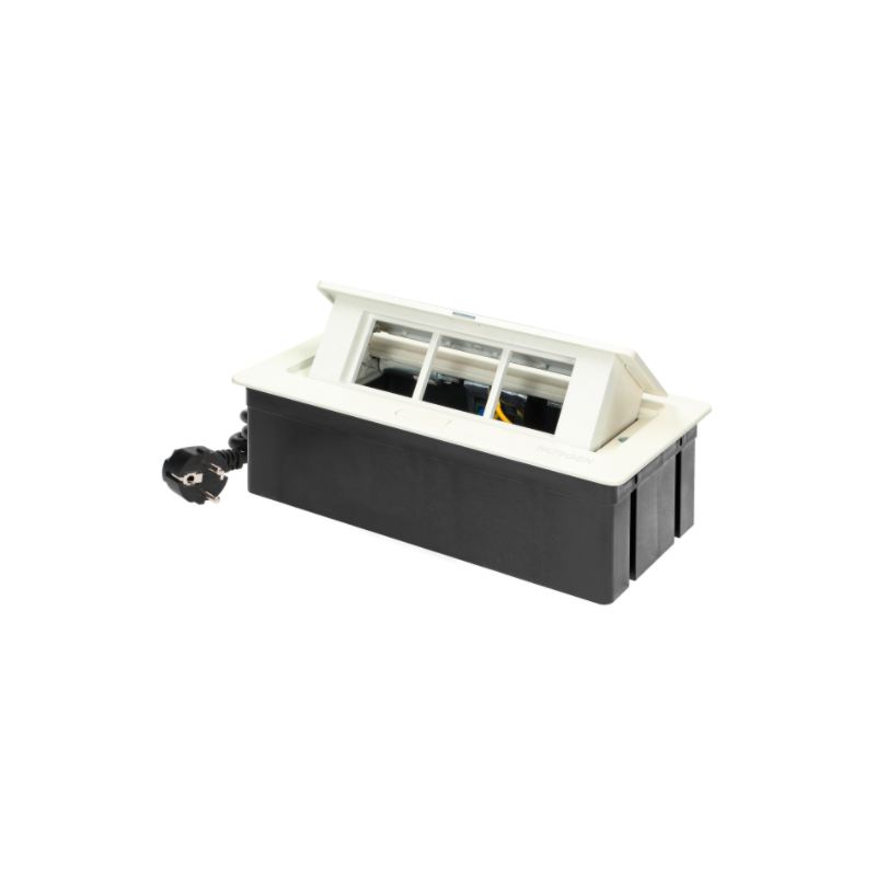 wyc.NOEN Kaseta meblowa wpuszczana w blat ze zintegrowaną ramką PCV na gniazda modułowe 3 x 45x45mm lub 6 x 22,5x45mm, przewód