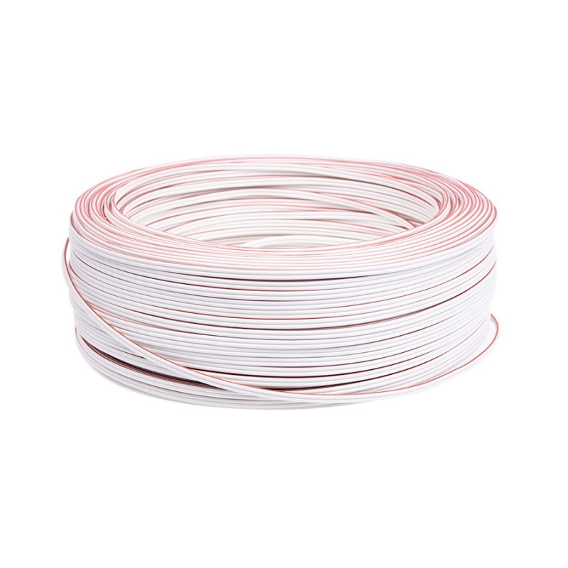 Przewód metraż, 2x0,35mm2, 1 żyła z czerwonym paskiem to przewód o długości 100 m w kolorze białym z jedną żyłą z czerwonym paskiem, dzięki któremu łatwo i sprawnie podłączysz oświetlenie.