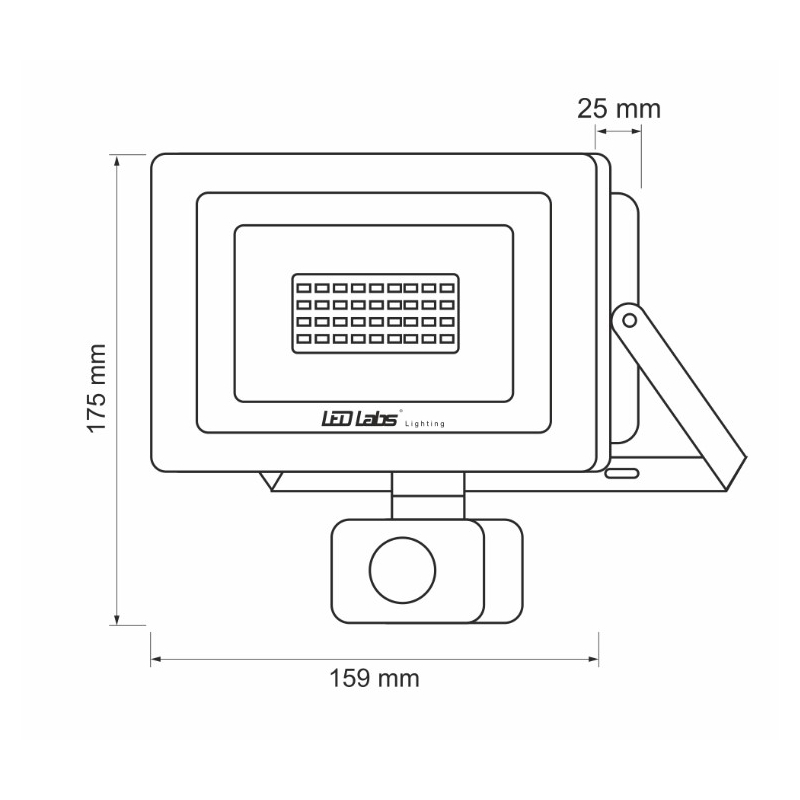 Naświetlacz LED 30W to niewielki naświetlacz (159 x 177 x 25 mm) o całkowitym strumieniu świetlnym równym 2700 lm (użyteczny strumień świetlny 120° 2400 lm). Wyposażony w uchwyty montażowe. Sprawdzi się jako oświetlenie tarasów, garaży, piwnic. Posiada wbudowany czujnik ruchu PIR.
