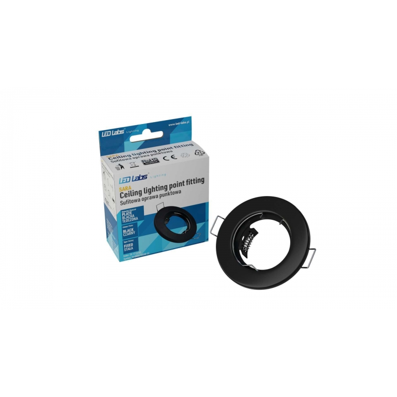 Oprawa sufitowa wykonana z blachy, okrągła w kolorze czarnym.