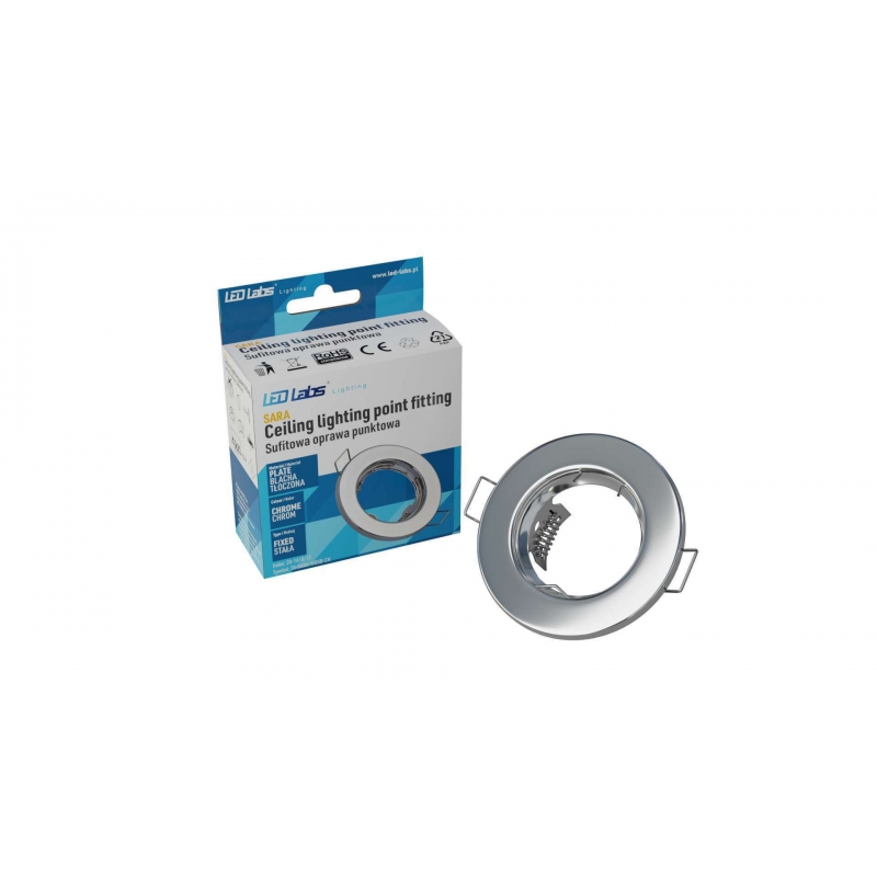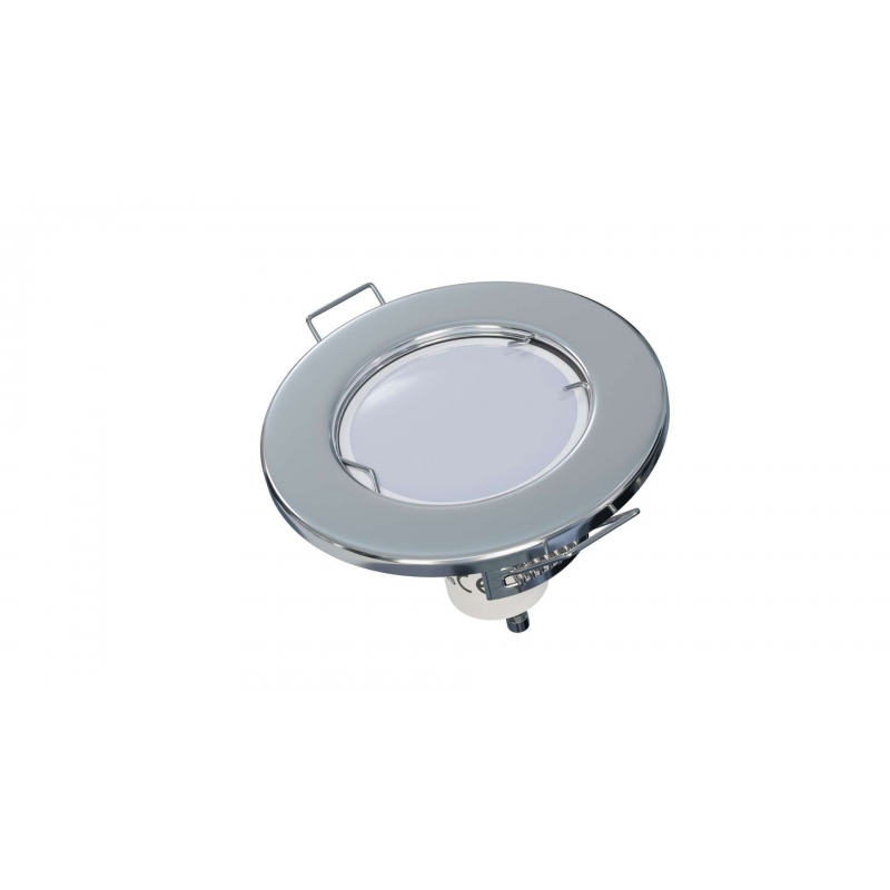 Oprawa sufitowa wykonana z blachy, okrągła w kolorze chrom.