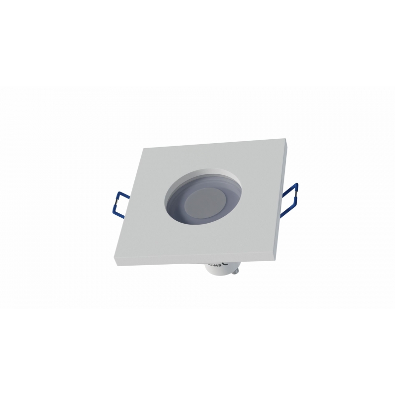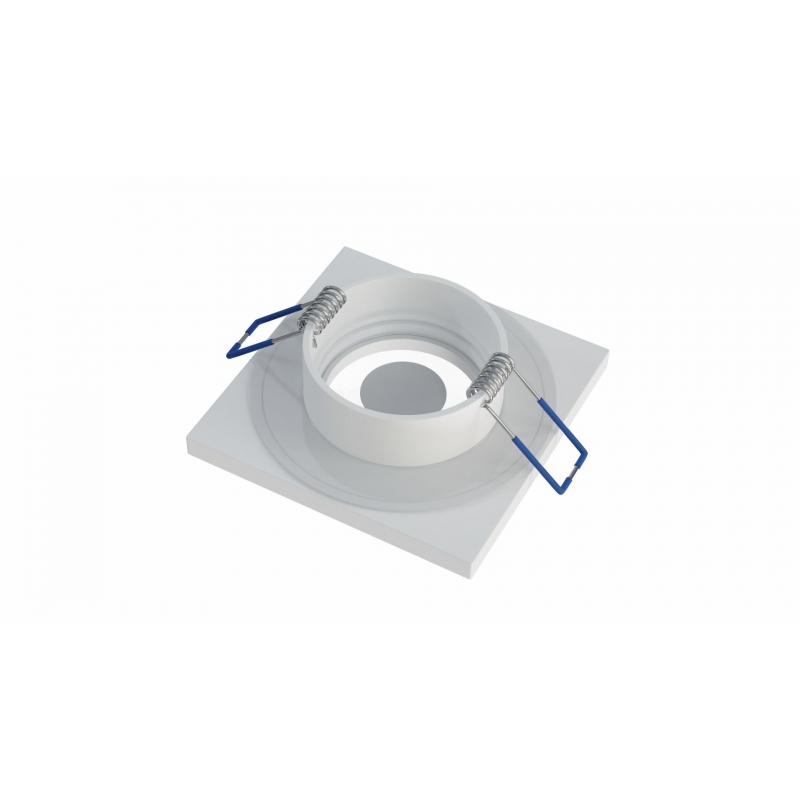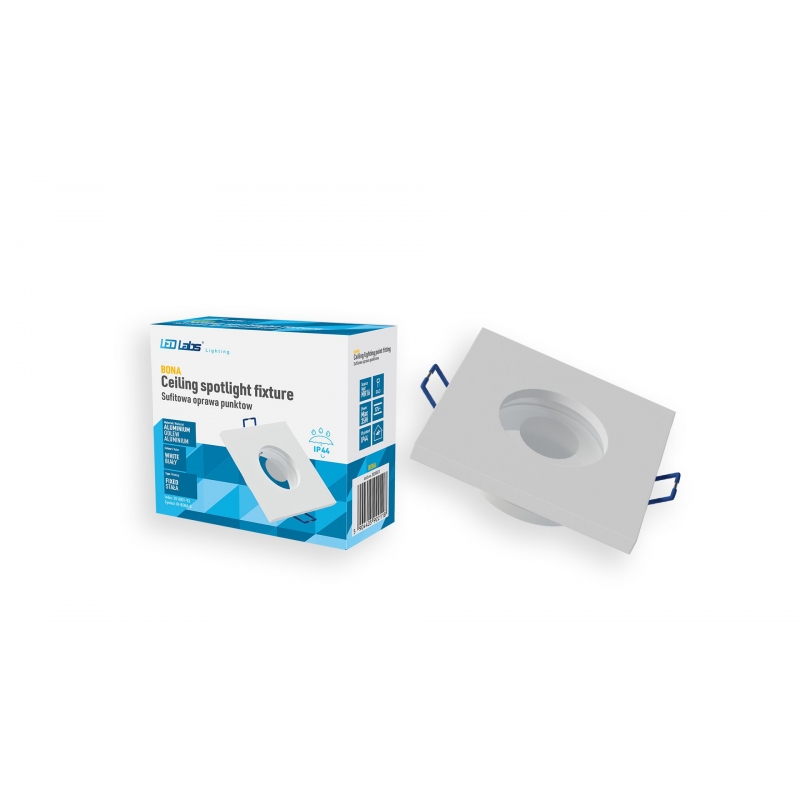 Oprawa sufitowa wykonana z aluminium, kwadratowa w kolorze białym.