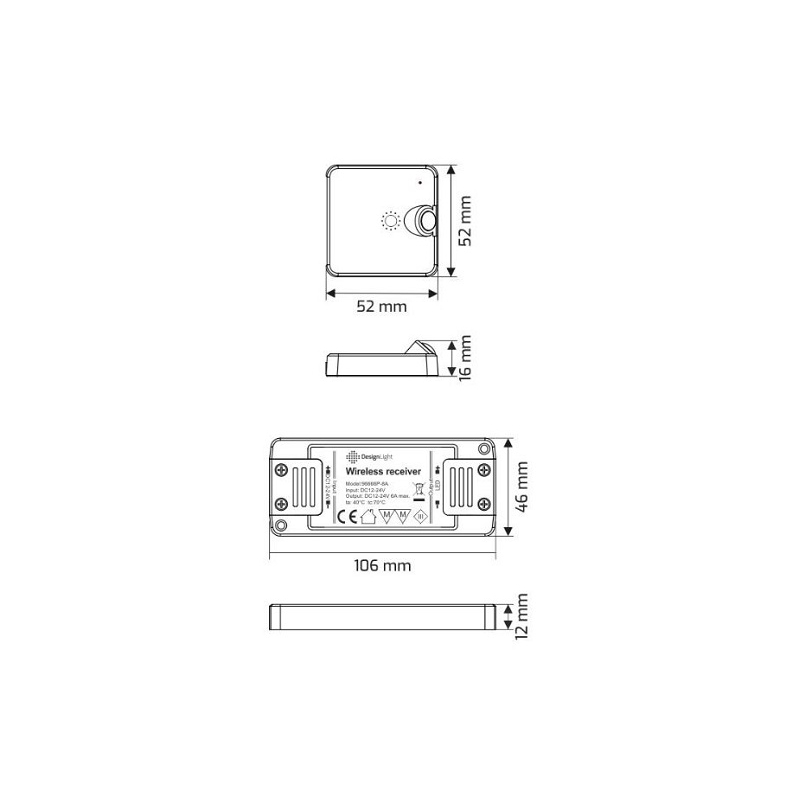 DELI 2 - bezprzewodowy zestaw PIR do szaf ze ściemniaczem, czarny