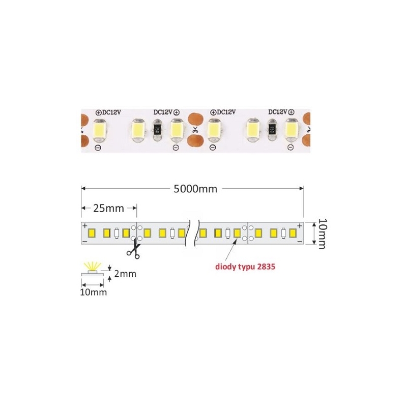 Taśma rolka PREMIUM typ 2835 IP20 600 LED szer. 10mm, 3pkt/2,5cm, biała ZIMNA moc 60W