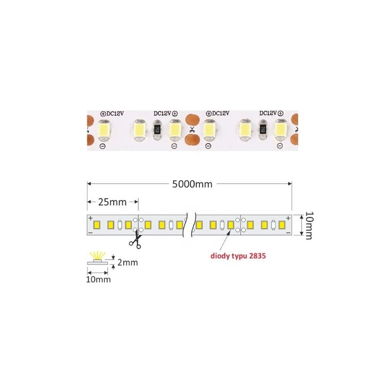 Taśma rolka PREMIUM TYP 2835 IP20 600 LED szer 10mm, 3pkt/2,5cm biała ciepła , moc 60W