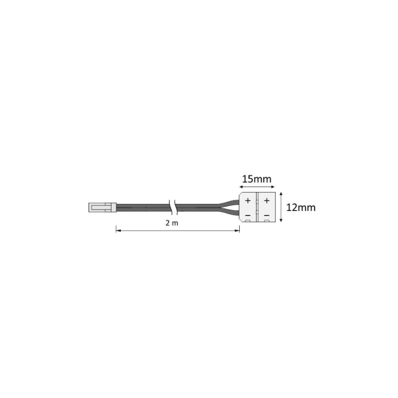 Mikrokonektor NOWY TYP do tasmy led 8mm, 2m przewód 2x0,22mm2, mini amp