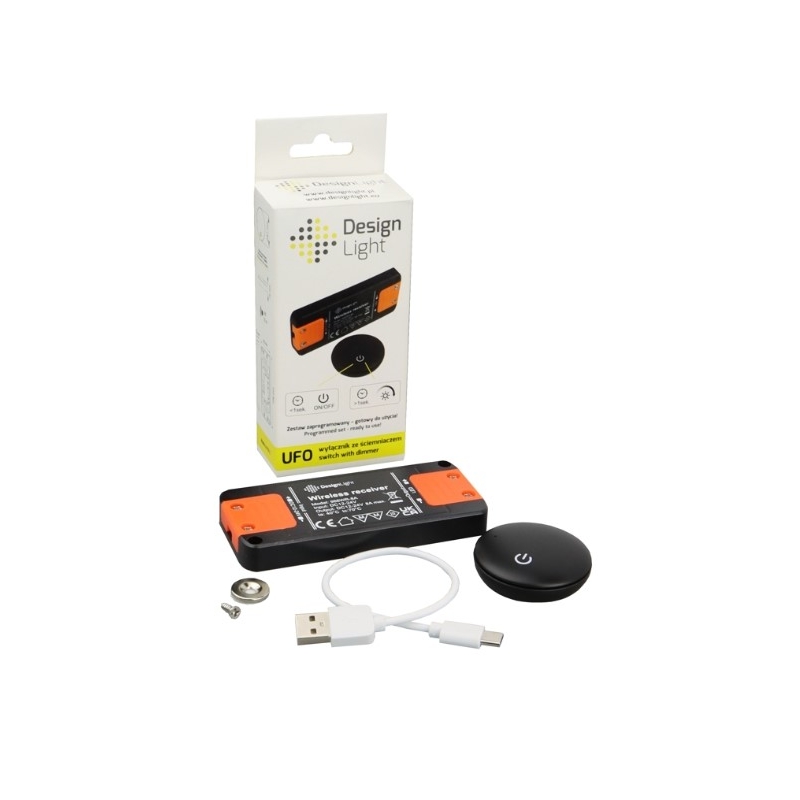 UFO wyłącznik RF ze ściemniaczem, zestaw 1 pkt (sterownik+sensor), 12-24VDC, max 8A, SENSOR CZARNY