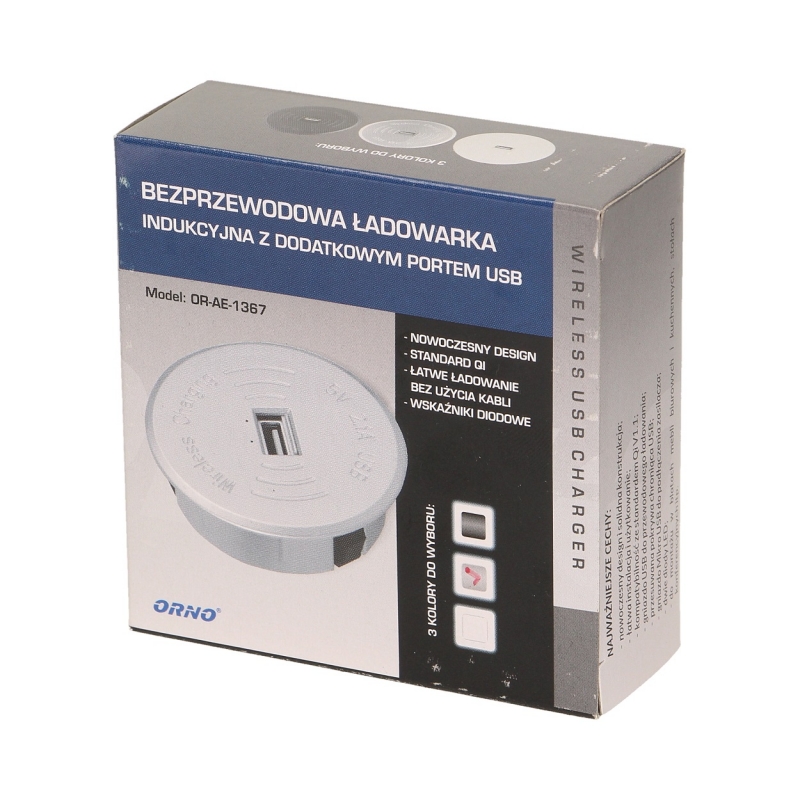 wyc.Bezprzewodowa ładowarka indukcyjna z dodatkowym portem USB, srebrna