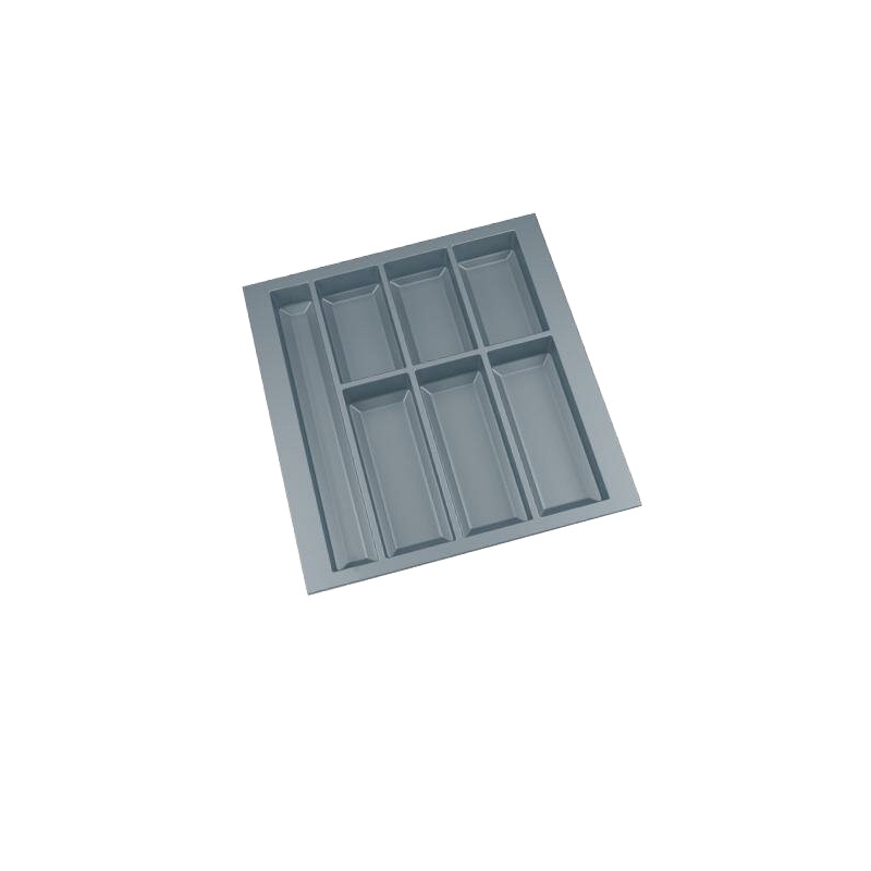 Wkład Classico na sztućce i akcesoria kuchenne w kolorze szarym. Wkład pasuje do szuflad o szerokości frontu 500 mm i głębokości prowadnicy 500 mm. Wkład ma po szerokości i po długości szerszy zapas, który umożliwia samodzielne docięcie wkładu do niestandardowych wymiarów szafki z szufladami.