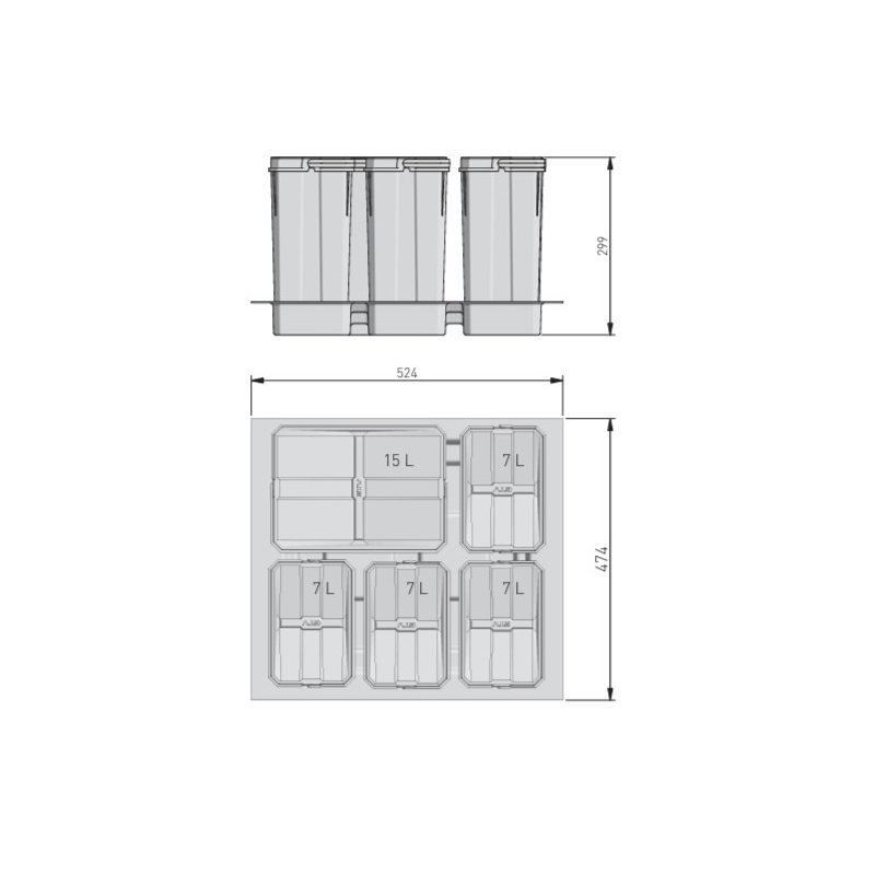 Pojemniki do segregacji AxiSpace, do szerokości szuflady 600 mm, 1X15L 4X7L