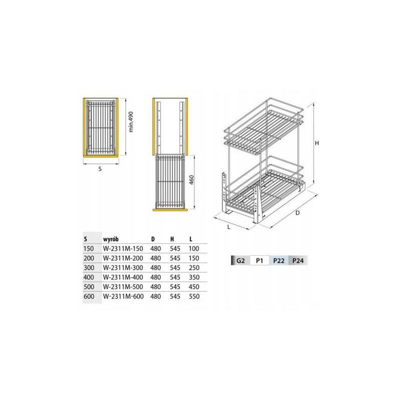 Kosz cargo mini 200 dwupoziomowy STANDARD, mocowanie dolne, G2 chrom, NOMET W-2311M-200.G2