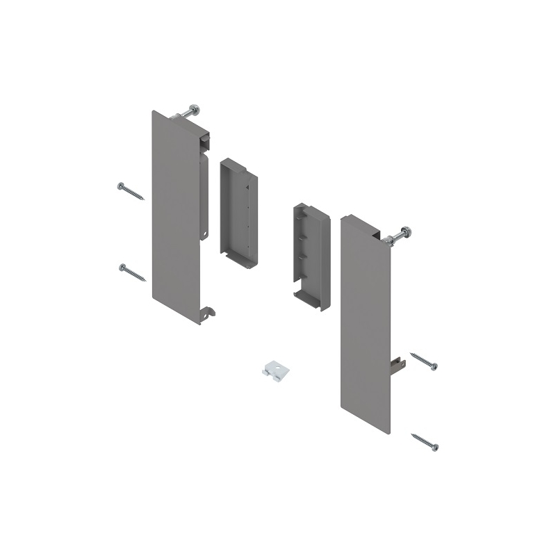 Aktualnie znajdujesz się na/Strona główna/Akcesoria/Szuflady/Merivobox/Mocowanie frontu MERIVOBOX, szary indium mat, do szuflady wew z relingiem poprzecznym, lewe/prawe